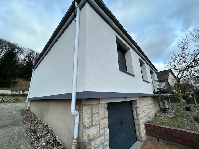 Une rénovation globale réalisée à Le Houlme avec une Isolation Thermique par l’Extérieur : remplacement des menuiseries extérieures, isolation des combles et du plafond de cave, pose d’une VMC et installation d’une pompe à chaleur et d’un ballon d’eau chaude sanitaire thermodynamique. L’ambition était de repositionner la maison qui date des années 1970 dans une classe énergétique qui permette de réaliser des économies d’énergie significatives et d’améliorer le confort de façon substantielle tout en apportant une touche de modernité aux extérieurs.